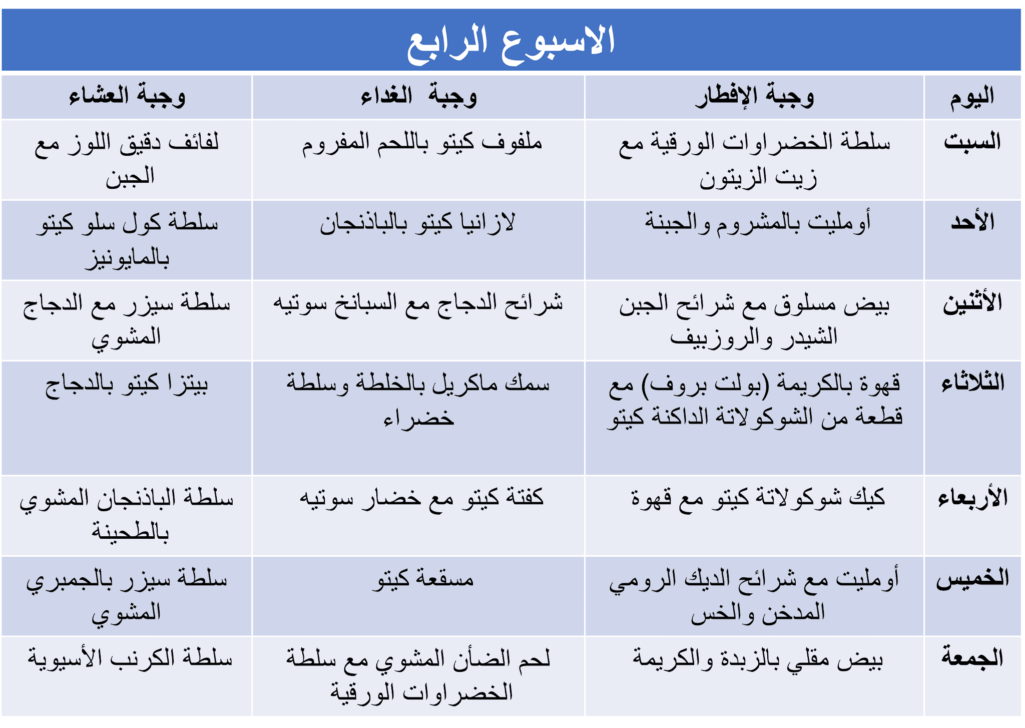 اصبح نظام الكيتو من انظمة الدايت المنتشرة فى الاونة الاخيرة لما له من نتائج سريعة وهو يعتمد على تطويع الجسم ليعتمد على الدهون للحول على الطاقة والتقليل من الكربوهيدرات وتصل نسبة الدون فى نظام الكيتو الى 20% والكربوهيدرات الى 5 % والبروتين الى 75% واليوم مع كرستالة سوف نتعرف على جدول كيتو دايت لمدة شهر