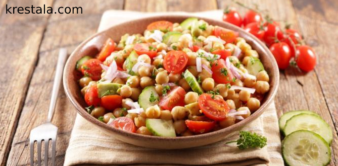 الحمص هو عضو في عائلة البقوليات وتستهلكه النساء في دول الشرق الأوسط منذ آلاف السنين. تمتزج مذاقها وقوامها اللطيفان تمامًا مع العديد من الأطعمة ، فهي غنية بالفيتامينات والمعادن والألياف ، وهي خيار ممتاز لك لفقدان الوزن خاصة إذا كنتى تتبعى نظام غذائى للتخسيس بالطبع ، سلطة الحمص هي واحدة من الوصفات اللذيذة والغنية التي يمكنك إضافتها إلى يومك ، واليوم مع كرستالة سوف نتعرف على طريقة عمل سلطة الحمص للرجيم .